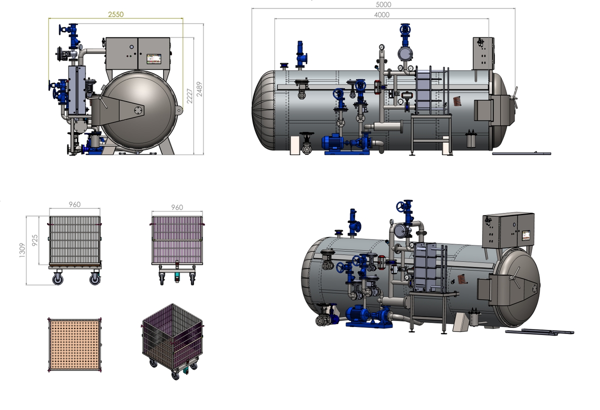AB2400 Otoklav Sistemi orta ve büyük ölçekli firmalar için geliştirilmiştir. Her şarjda 2400 kutu/kavanoz (Ø99x110 mm) kapasitesi ile işletmenizin üretim ve kalitesini artıracaktır.
