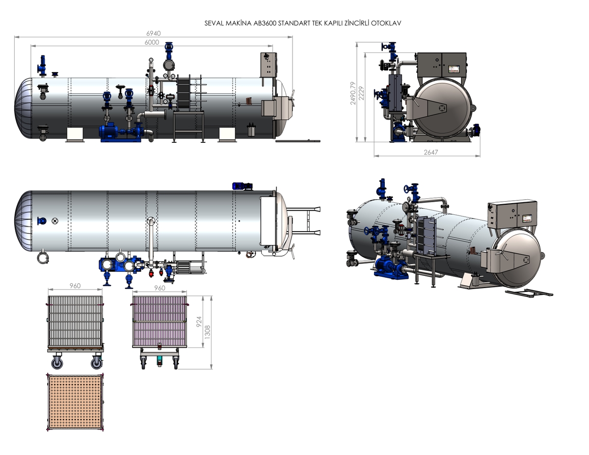 AB3600 Otoklav Sistemi orta ve büyük ölçekli firmalar için geliştirilmiştir. Her şarjda 3600 kutu/kavanoz (Ø99x110 mm) kapasitesi ile işletmenizin üretim ve kalitesini artıracaktır.
