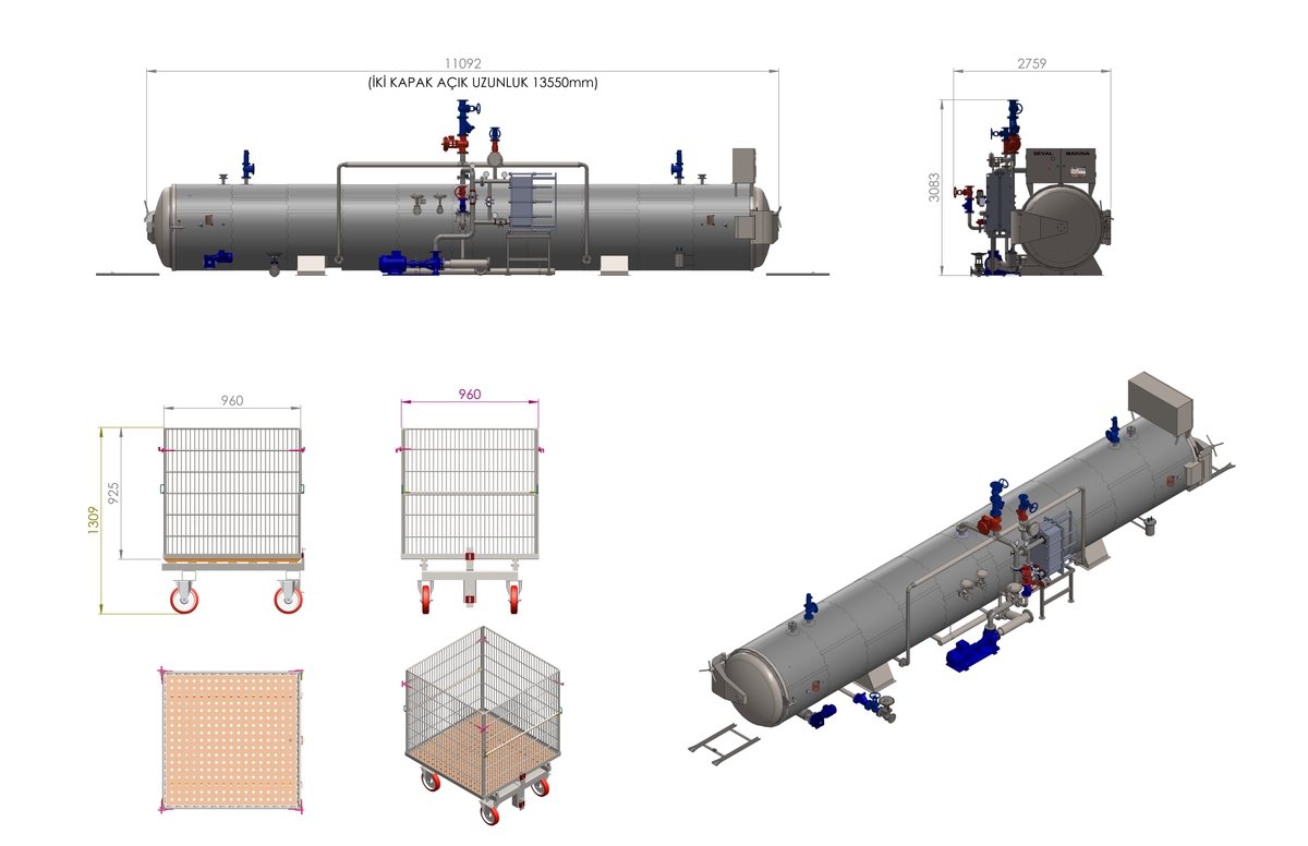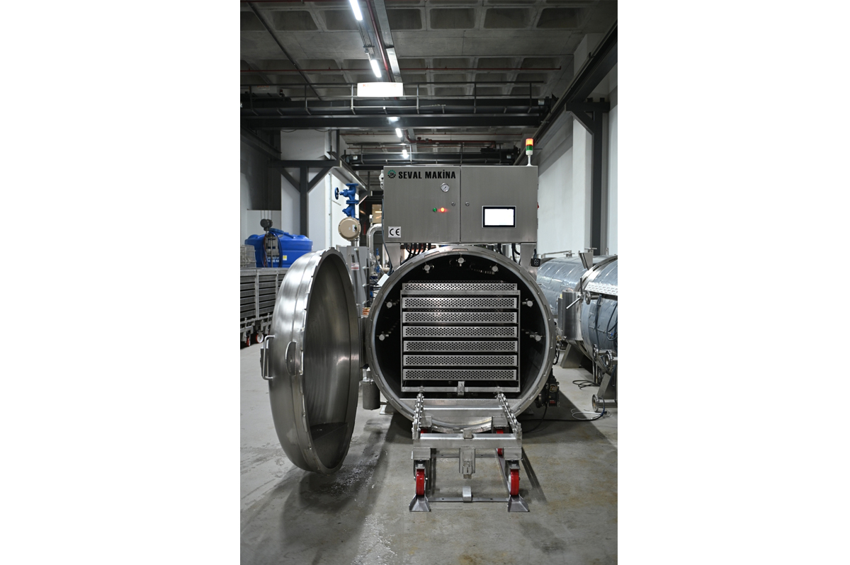 Otoklav içerisinde otomatik sepet hareket ettirme sistemi sayesinde bir taraftan giren ürünler diğer taraftan çıkarak üretim bandınızın aksamamasını sağlar ve verimliliğinizi artırır.