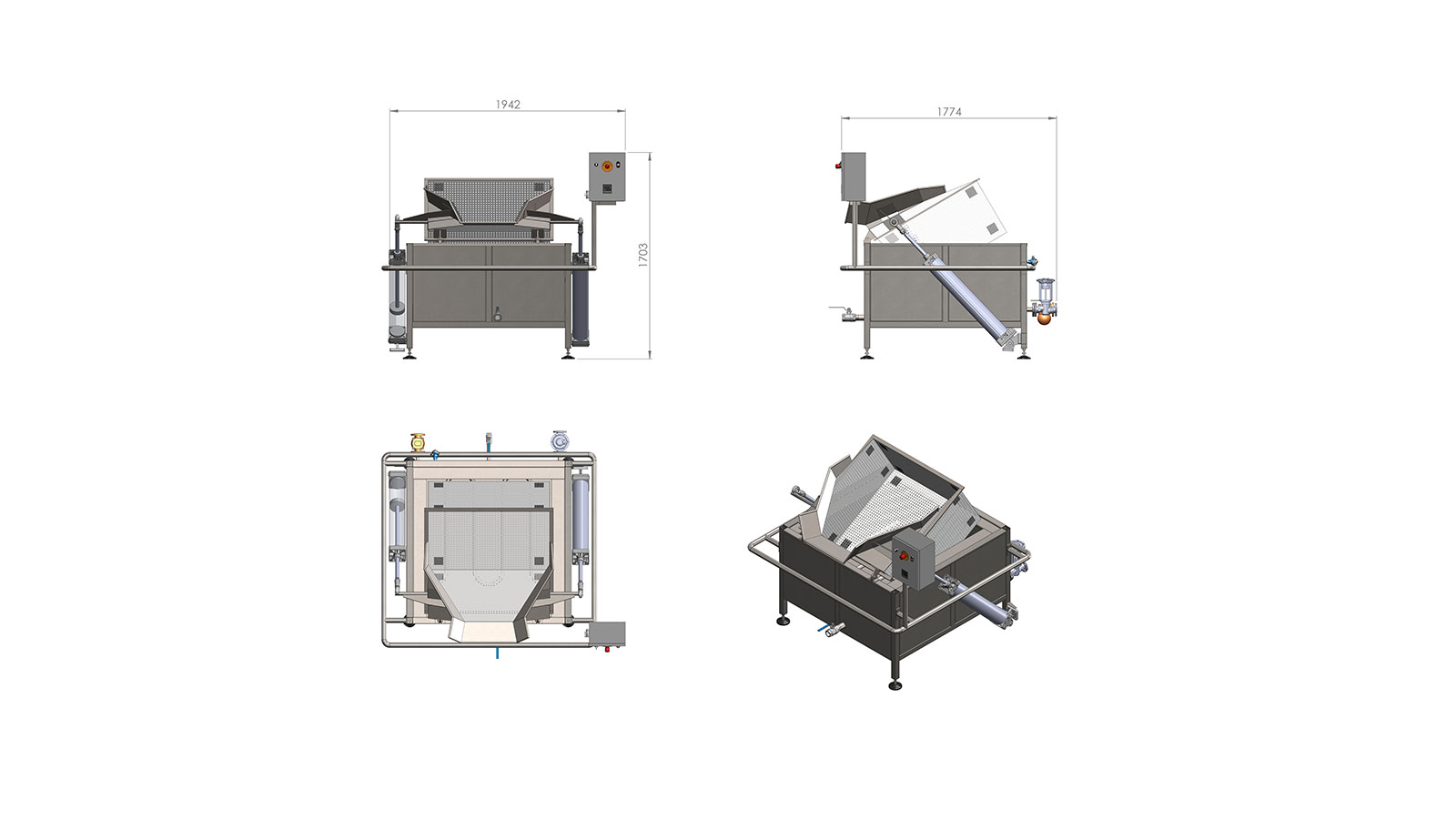 Pnömatik pistonları ile boşaltımı kolaylıkla sağlamaktadır.